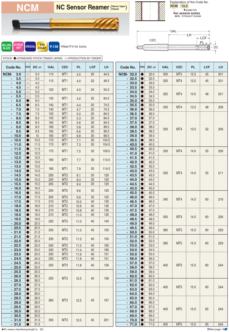 NC Sensor Reamer, Excellent surface finish and durability (Morse Taper Shank)