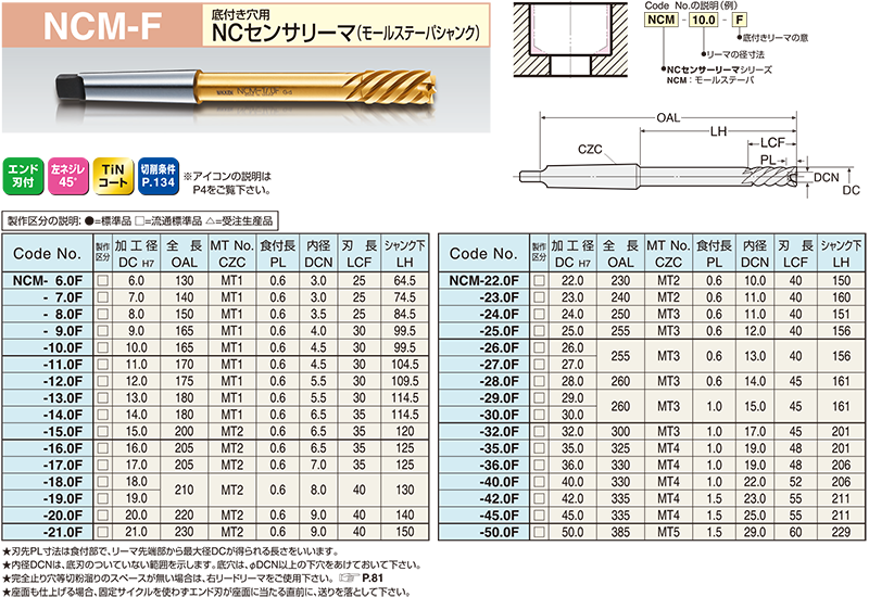 NCM-F NCセンサリーマ (モールステーパシャンク) 検査無用の穴精度 NCセンサリーマ 検査無用の穴精度 カタログダウンロード 底付き穴用 NCセンサリーマ モールステーパシャンク PDFダウンロード ×